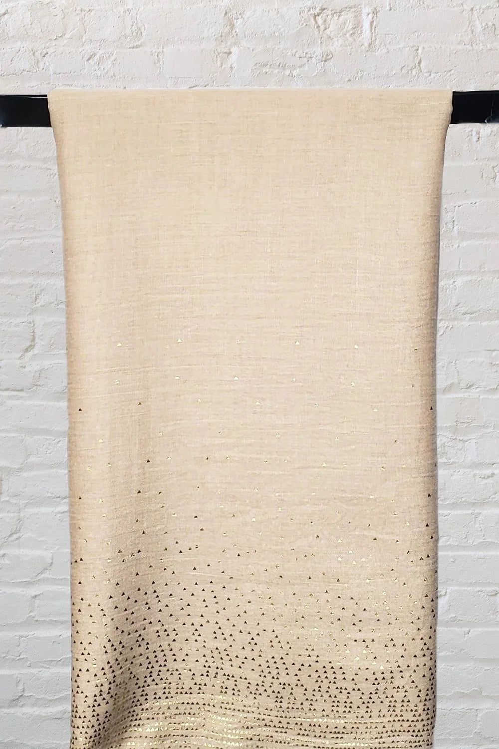 This beautiful scarf with a metallic touch, is not only super soft and comfortable, but is super easy to style. The pop of metallic gold scattered pattern on the ends is the perfect pop this scarf needs.