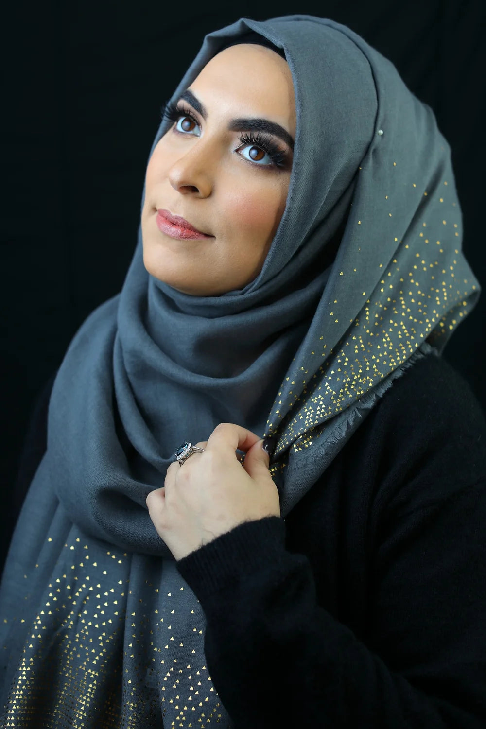 This beautiful scarf with a metallic touch, is not only super soft and comfortable, but is super easy to style. The pop of metallic gold scattered pattern on the ends is the perfect pop this scarf needs.